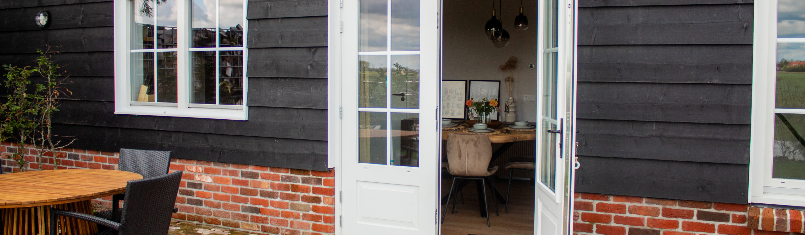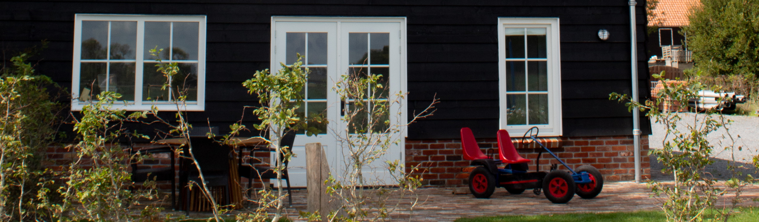 Buiten is er een fijn plekje waar u kunt genieten van de zonsopkomst, het weidse uitzicht en de kinderen heerlijk kunnen spelen met de skelter en trampoline.