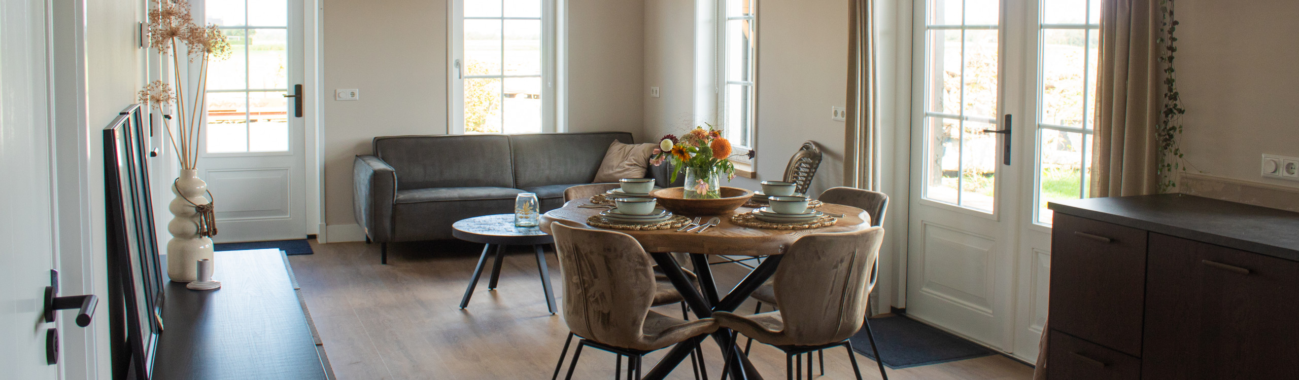 Onze sfeervolle vakantiewoning is volledig gelijkvloers en uitgerust voor 4 personen. Bestaand uit 2 slaapkamers, douche en een aparte toilet. De keuken, eethoek en zithoek bestaan uit één grote ruimte.